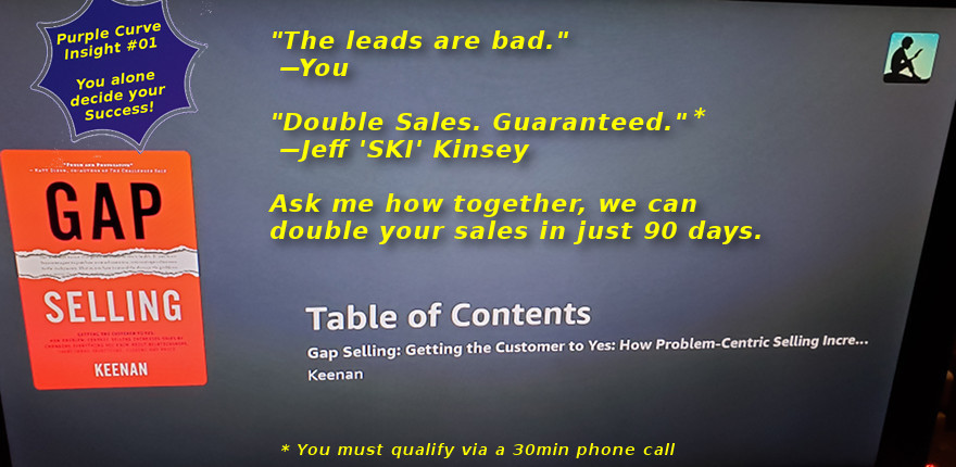 BTW, that opening image is a screenshot of my TV/2nd computer screen with the amazing Amazon Alexa Fire TV cube “reading” GAP Selling by Keenan to me as I work. One of the only forms of multitasking that I can endorse.